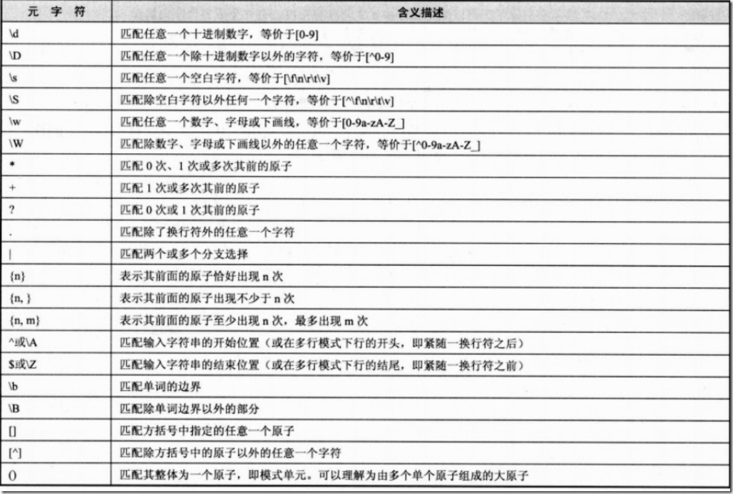 1.2 原子:原子包含了普通字符,如字母、数字;非打印字符,如空格、回车;特殊字符和元字符,如引号、*、+等,必须用”\”进行转义;自定义原子表,如[apj]、[a-z];通用字符类型,如\d、\D。