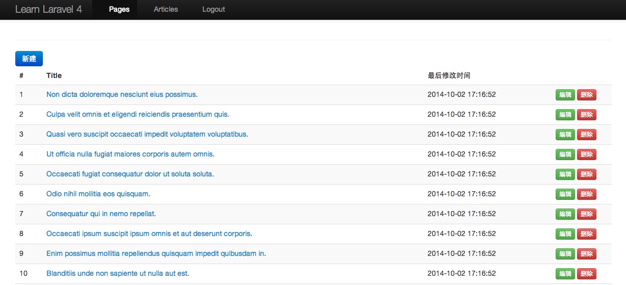 大作业:目前Pages管理部分已经全部完成,但是Articles管理部分还是啥都没有,尝试模仿Pages的代码,完成一个跟Pages一样的管理系统。小提示:包含 控制器、视图和表单验证哦。等你完成了Articles管理部分,Laravel就真正入门啦!