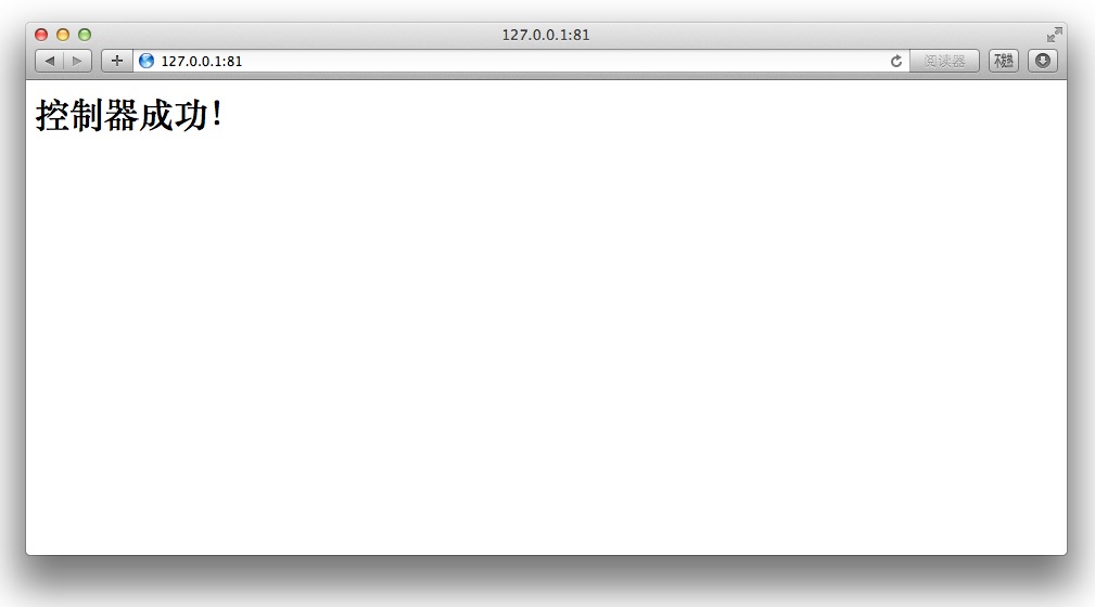 echo "<h1>控制器成功!</h1>";