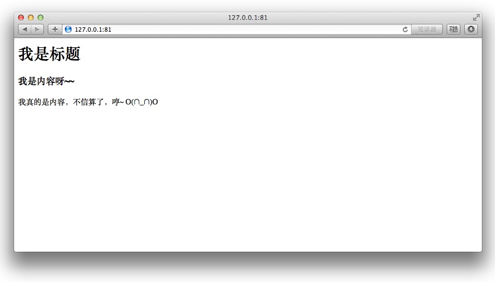 (1,'我是标题','<h3>我是内容呀~~</h3><p>我真的是内容,不信算了,哼~ O(∩_∩)O</p>'),