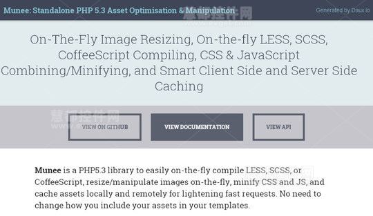 Munee是一个集图片尺寸调整、CSS-JS合并/压缩、缓存等功能于一身的PHP库。可以在服务器端和客户端缓存资源。它集成了PHP图片操作库Imagine来实现图片尺寸调整和剪切,然后进行缓存。Munee可以自动编译LESS、SCSS和CoffeeScript,并且可以把CSS+JS文件合并成一个单一的请求,此外,还可以对这些CSS-JS文件进行精缩,让其拥有更好的性能表现。该库还可以轻易地与任何代码集成。