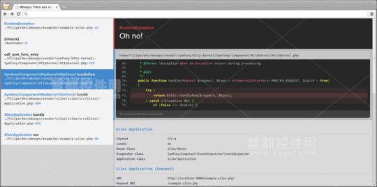 Whoops适用于PHP环境的错误捕获与调试PHP库。它提供了一个漂亮的错误界面,可以帮助开发人员调试Web项目,但其核心是一个简单但功能强大的叠加错误处理系统。