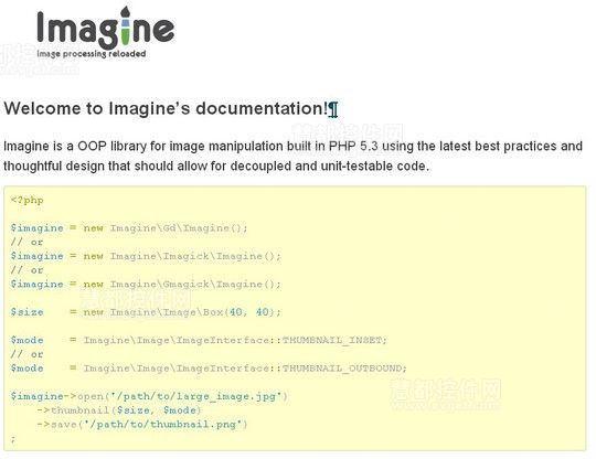 Imagine是一个面向对象的PHP类库,用于图片操作。这个类库能够处理一些常用到的操作如:调整大小、裁剪、应用过滤器等。其Color类库可用于对任意对定的颜色生成RGB值。并且还提供一些方法来绘制图形如:圆弧,椭圆,线,片等。此外,还可以利用一个灵活的字体类来加载任意字体文件,然后将文字插入到图片中。