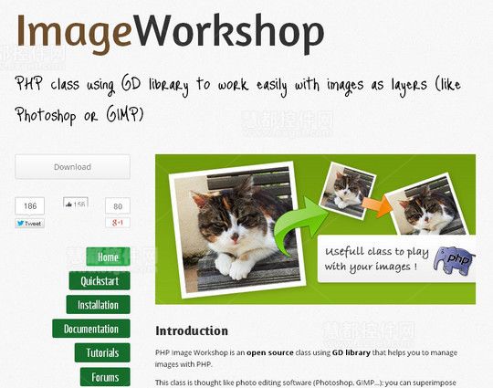 Php Image Workshop是一个被认为基于图层图像编辑软件的可自由使用的PHP类。它具有允许叠加多个层,把一个图像放到另一个上面进行移动、调整大小、裁剪、写字等功能。