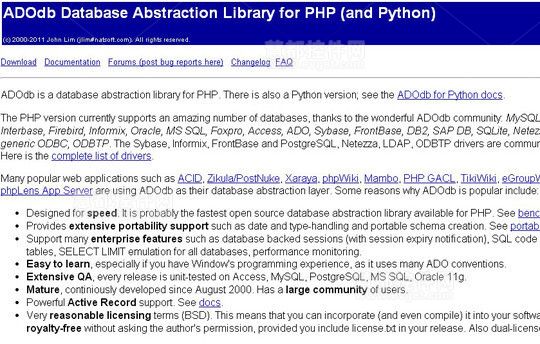 Adodb是Active Data Objects Data Base的简称,它是一种PHP存取数据库的函式组件。