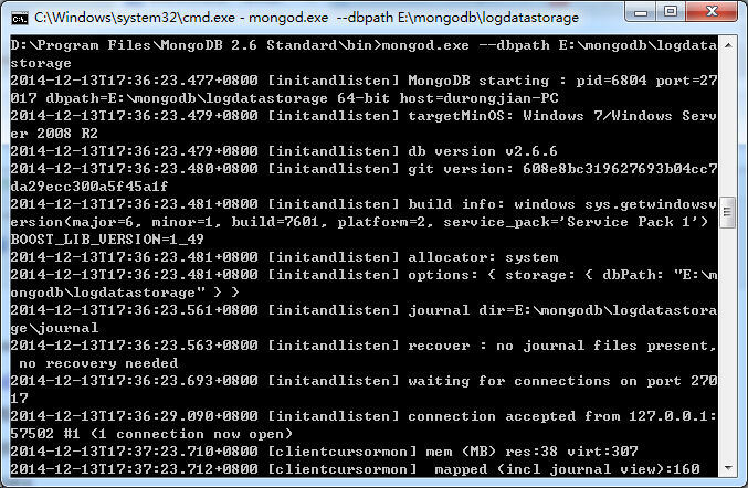 5. 启动mongodb(简单启动不配置服务)