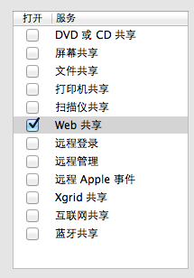 然后打开系统偏好设置中的共享,将web共享勾上,如下图