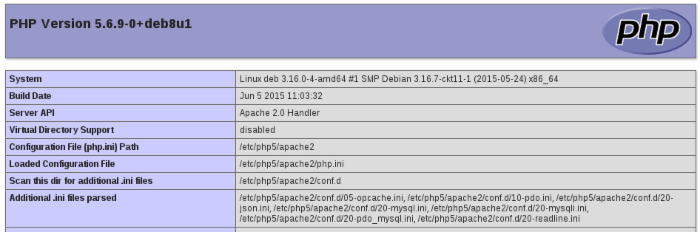 接下来我们通常要做的是,在 /var/www/html (这是 Apache2 在大多数发行版中的工作目录)这个位置创建一个内容为 <?php phpinfo(); ?> ,名为 infophp.php 的文件来测试(PHP是否安装正确),执行以下命令即可。