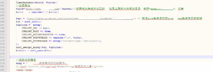 $api = 'http://data.zz.baidu.com/urls?site=www.baidu.com&token=hereistoken'; // 前边的site换成自己的site xxx换成自己的密钥