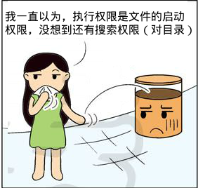 明显手册中,对目录的执行权限有明确的指示。对目录的执行权限,就是拥有被搜索的权利。