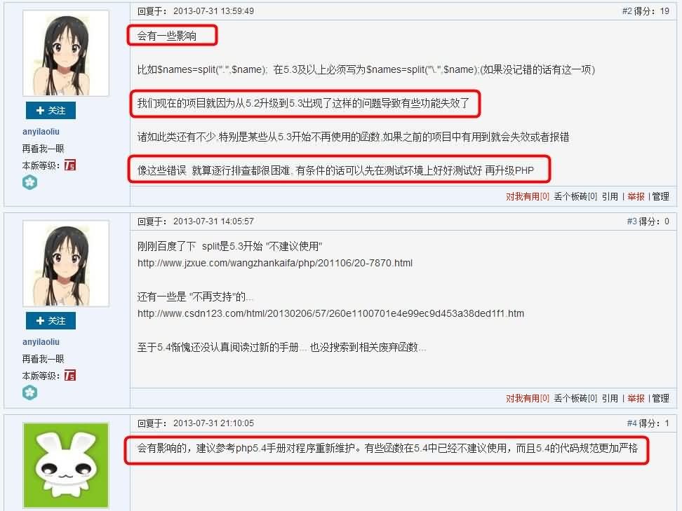 PHP采用大版本向下兼容的升级方式,也就是说5.5兼容5.1-5.4,话虽如此,实际上兼容性并不乐观,大家也不要指望PHP官方会给出什么好的解决办法。现在2013年9月,版本有5.2.17 5.3.27 5.4.17 5.5.3