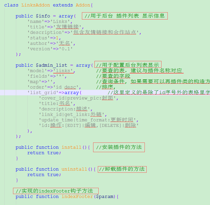 五、打开插件入口文件:LinksAddon.class.php 里面有个类LinksAddon,先来分析一下这个文件吧
