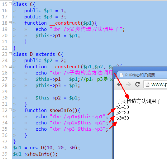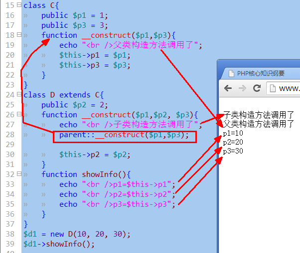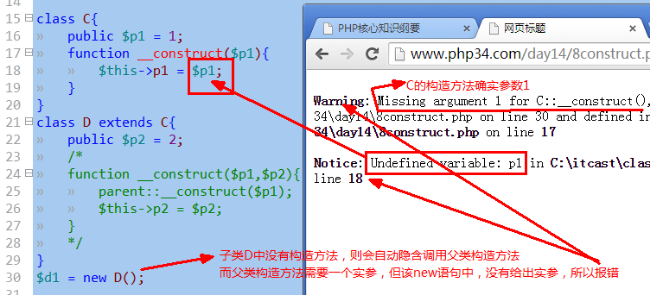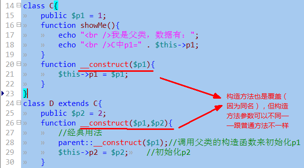 子类定义了自己的构造方法,则不会自动调用父类的构造方法,但可以手动调用:parent::__construct();