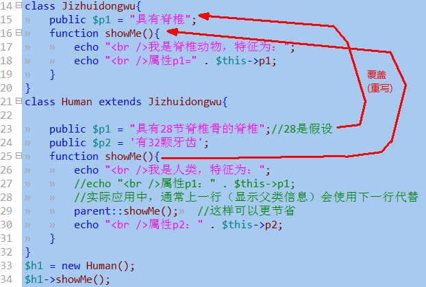 重写又叫覆盖,就是将从父类继承下来的属性或方法重新“定义”——就是从新写。
