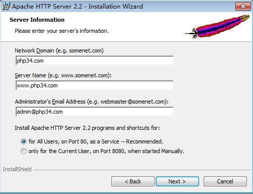 2,尽量将apache,php,mysql安装到一个总的目录,便于管理。