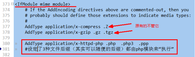 初始apache安装完之后,其配置项还不能运行php脚本(代码)。
