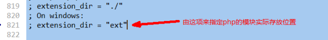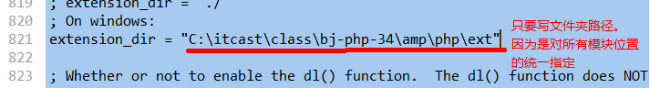 在php中,模块位置的设定是一个单独的设置项,而且所有模块都放一起: