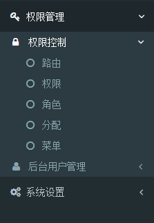 按照刚刚介绍的这种方式添加吧,举一个添加二级菜单"权限控制"的例子