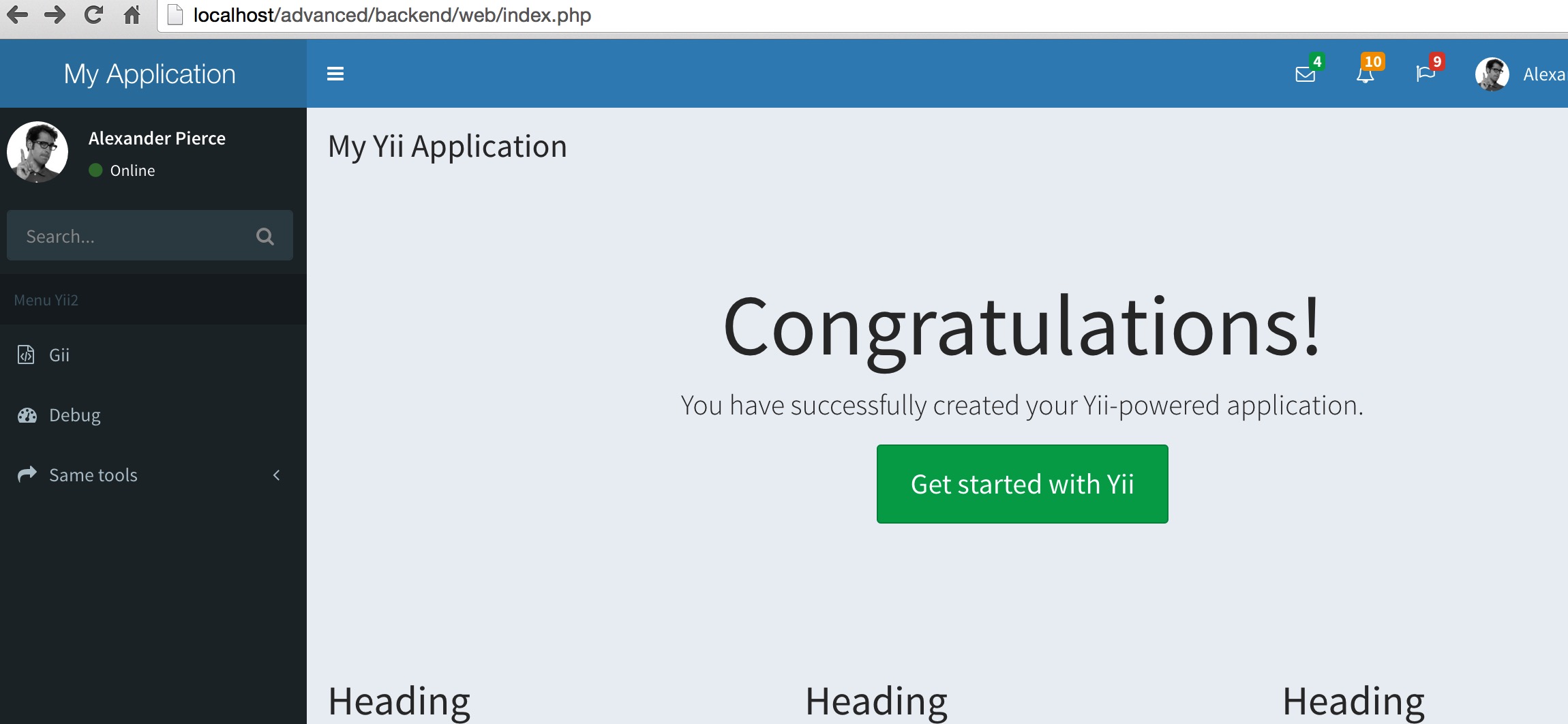 后台的模板我们采用利用 AdminLTE(Backend theme for Yii2 Framework)