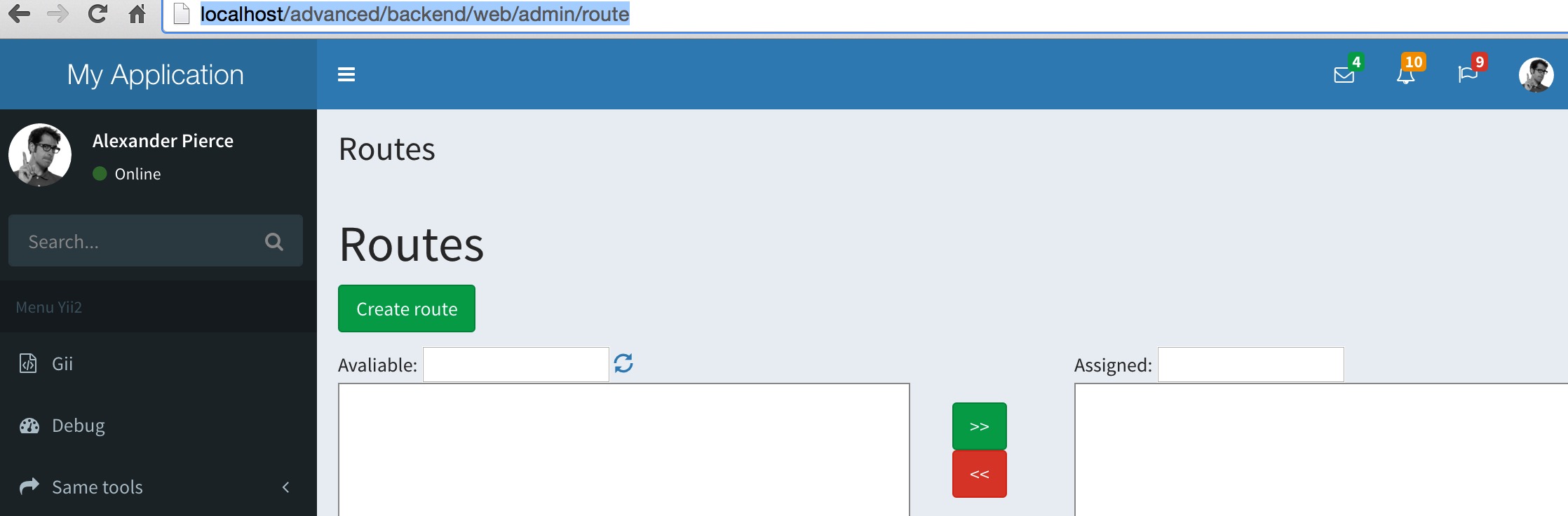 'modules' => [ 'admin' => [ 'class' => 'mdm\admin\Module', ], ], 'aliases' => [ '@mdm/admin' => '@vendor/mdmsoft/yii2-admin', ], //这里必须添加authManager配置项 'components' => [ ... //components数组中加入authManager组件,有PhpManager和DbManager两种方式, //PhpManager将权限关系保存在文件里,这里使用的是DbManager方式,将权限关系保存在数据库. 'authManager' => [ 'class' => 'yii\rbac\DbManager', 'defaultRoles' => ['guest'], ], ... ],