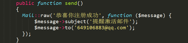 必须注意的是 在控制器引用邮件发送时 必须首先引用use Mail