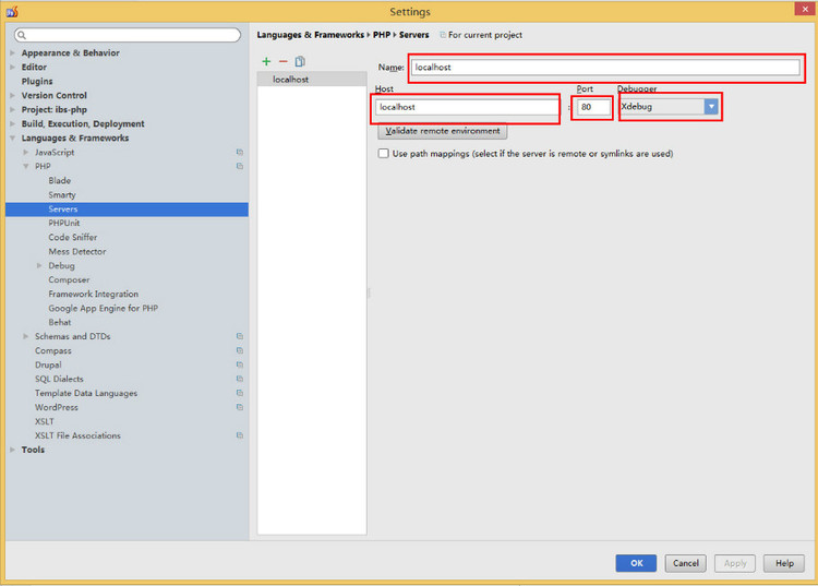 (1)配置PHP Server找到【Servers】,配置项如下: Name:localhostHost:localhostPort:80Debugger:XDebug如下图所示: