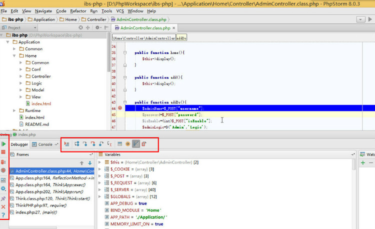 (3)在PHPStorm中设置断点在行号后面空白处单击即可设置断点。