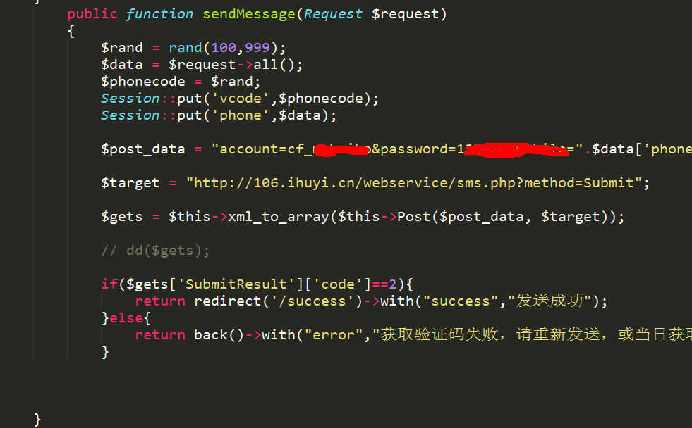 今天在做到用户注册和个人中心的安全管理时,我实现借助第三方短信平台在Laravel框架中进行手机验证的设置;