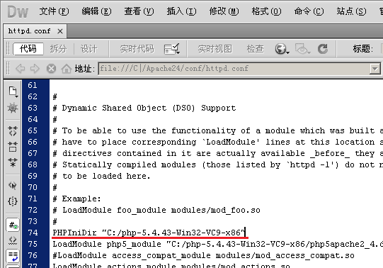 如"C:/php-5.4.43-Win32-VC9-x86是php的压缩目录,应该有PHPIniDir "C:/php-5.4.43-Win32-VC9-x86"
