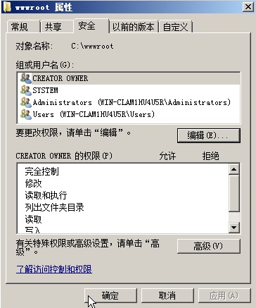 还需要在“属性”窗口再次点确定,否则权限无法保存。