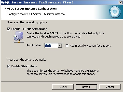 之后是网络连接的选项,“enable TCP/IP Networking”可以按照需求来选择,如果不做集群的话可以把勾去掉,如果是在内网