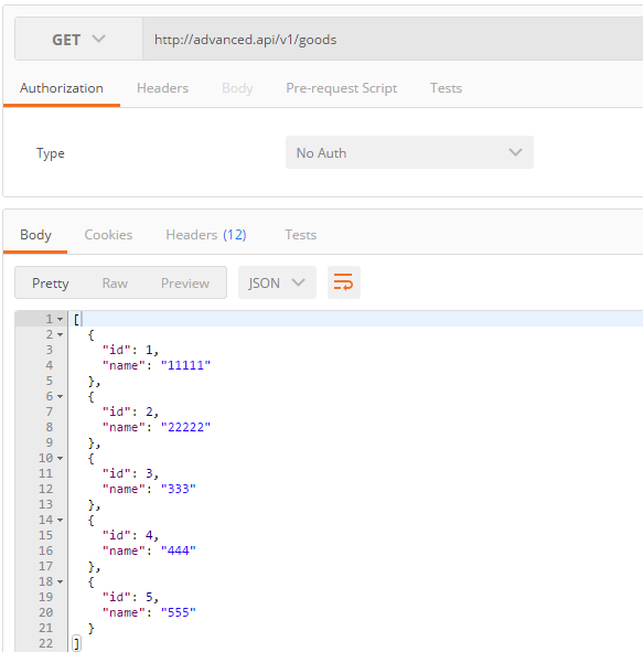 经过上面几个步骤,到此我们已经为goods成功创建了满足restful风格的api了。为了更好更方便的演示,我们借助工具postman进行模拟请求。