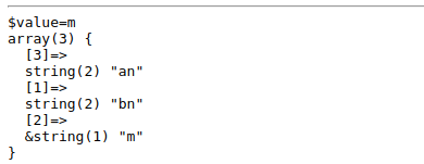 $value='m'; echo "<hr>"; echo "\$value=$value <br>"; echo var_dump($a);