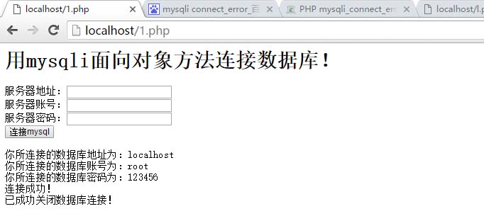 以上这篇PHP中用mysqli面向对象打开连接关闭mysql数据库的方法就是小编分享给大家的全部内容了,希望能给大家一个参考,也希望大家多多支持脚本之家。