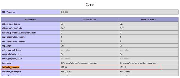 这里PHP Version 5.6.21,那么htmlspecialchars使用的编码即为配置项的编码,如下: