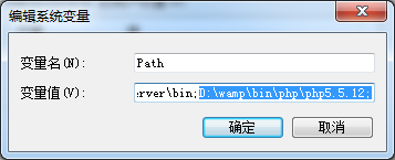 在path的值里面添加php安装的目录:如D:\wamp\bin\php\php5.5.12;