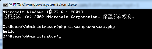 然后按下回车键,好了,我们的php文件在cmd里面运行了,输出了一句:hello