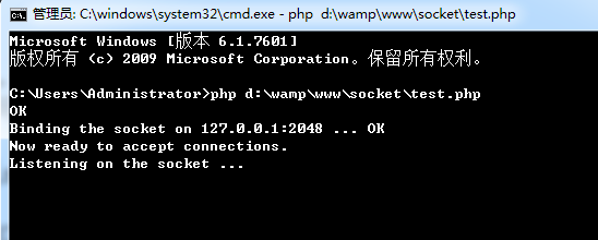 由于socket服务端的代码要监听端口,等待接收请求,所以php在做socket服务的时候需要将php文件运行在CMD里面。