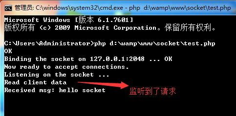 这样的话php文件能够成功在cmd里面运行,接下来我们来看一下php怎么实现socket通信。