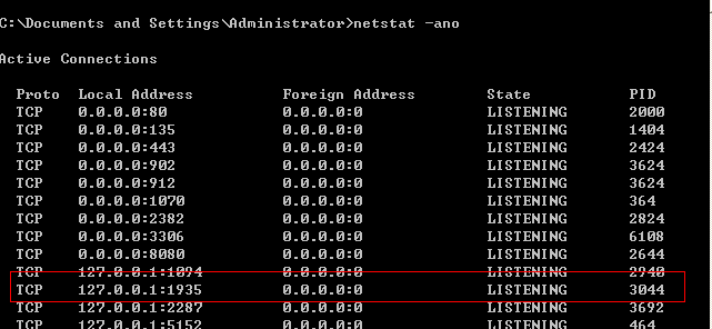 没有反映,对现在服务端的程序已经开始运行,端口已经开始监听了。运行netstat -ano可以查看端口情况,我的是1935端口