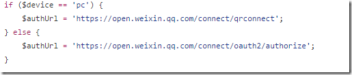 2. 后面的多了一个device参数,这个是必要的。因为微信pc端跟移动端的授权地址是不一样的,而后面的链接是发送个proxy.your.com的,所以需要多加个参数告诉它在转发给授权申请给微信的时候,是用PC端还是移动端的授权地址。