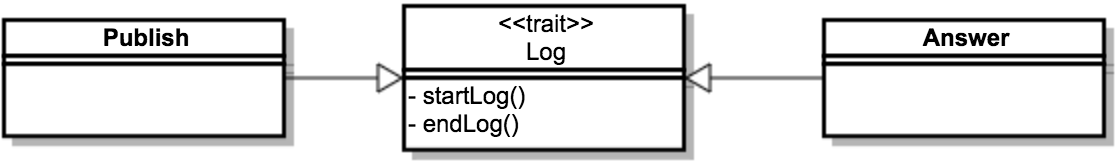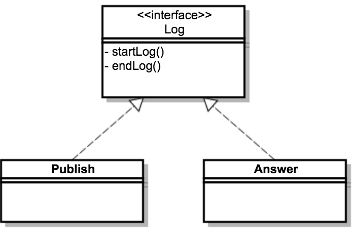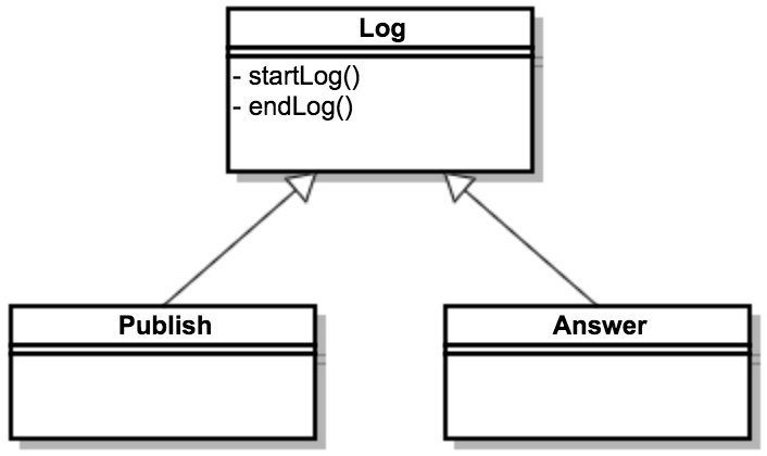 可以看到继承的确满足了要求。但这却违背了面向对象的原则。而发布(Publish)和回答(Answer)这样的操作和日志(Log)之间的关系并不是子类与父类的关系。所以不推荐这样使用。