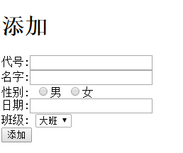 <div>名称:<input type="text" name="sname" value="<?php echo $arr[1]; ?>"/></div> <div>性别: <input type="radio" name="ssex" value="1" <?php echo $arr[2]?"checked='checked'":""; ?>/>男 <!-- 三元运算符,如果性别=ture,默认值就在男上面,否则空--> <input type="radio" name="ssex" value="0" <?php echo $arr[2]?"":"checked='checked'"; ?>/>女 </div> <div>日期:<input type="text" name="sbirthday" value="<?php echo $arr[3]; ?>"/></div> <div>班级:<select name="class">