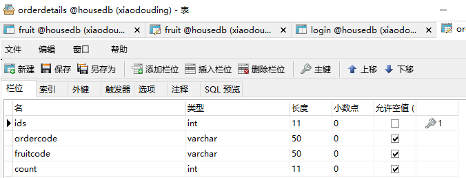 购物车还是和上一篇购物车中的产品是一样的,这时我们再去看看数据库中的表。