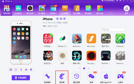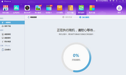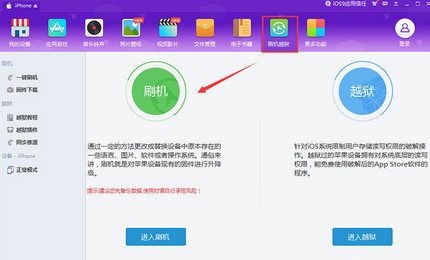 1.打开同步助手,在主页面上点击【刷机越狱】,进入刷机界面