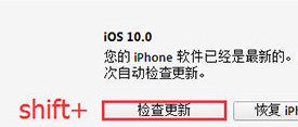 4.然后按住键盘上的 Shift,同时鼠标点击 iTunes 界面的【检查更新】按钮,再选择对应版本的 iOS9.3.5 固件进行降级。