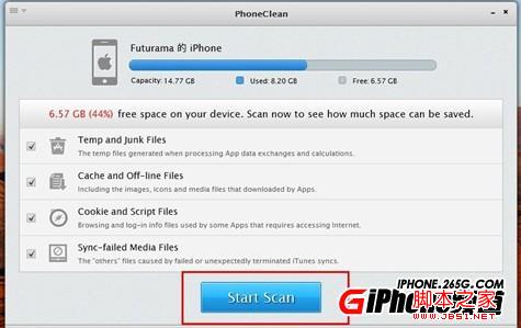下载iMobile公司推出的Phoneclean软件,它可以帮助我们清除iOS设备上的无用文件,释放可用空间。