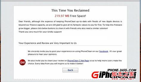 最后软件会提示已经清理了多少垃圾文件,大家只需要点下"Back"就行了。到此清理垃圾文件就已经完成了。