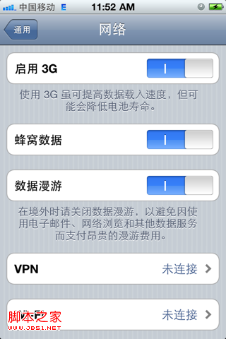 无论是iPhone4还是3GS,升级4.01后如果用联通卡激活,网络设置里都没有APN选项,部分用户用移动卡激活会有APN显示,但是也有更多用户的找不到设置项。这里欧若建议,手机激活时尽量选择自己常用的手机卡,联通的网络设置是预置的,不需任何操作就可以上网和彩信,而移动的需后续设置APN为cmnet。这里不必再说联通3G卡设置了,单说移动卡,如果激活用移动卡还是找不到蜂窝数据设置显示,请尝试一下操作。