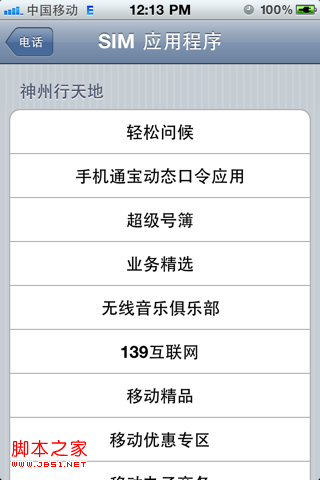 3、返回设置--电话--开启FaceTime后(如果遇到还原后没有facetime的情况,请先把SIM卡拔出,然后插入解决),点击SIM卡应用程序,进入此栏目随意点击一个栏目后返回桌面